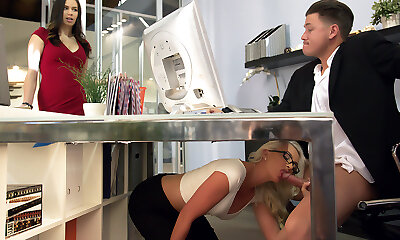 whorey segretario dà il suo manager una fellatio sotto il tavolo