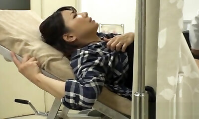 Loud oriental schoolgirl getting fingered by her doctor on the medical bed