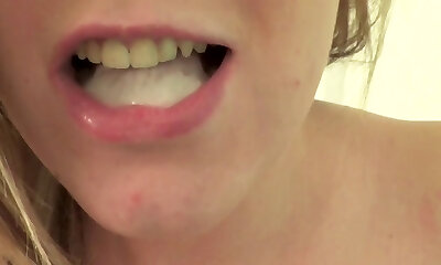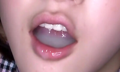 sperm in her mouth for her to guzzle